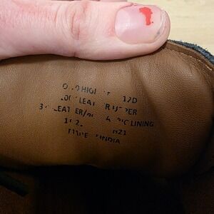 Tumbled leather/waxed suede/polyester upper; leather/polyester lining; suede heel grip; polyurethane toe bumper and heel overlay; rubber outsole