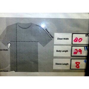 • Measurements: Chest Width = 20", Body Length = 29", Sleeve Length = 8"