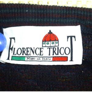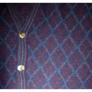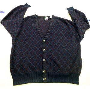 Vtg 90s Florence Tricot Cardigan Sweater Argyle L Patterned Wool Blend Italy