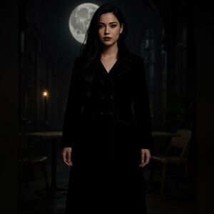 Vintage Gothic Style Velvet Velour Women's Black Trench Coat Size S