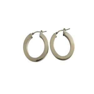 Sterling silver oval hoop earrings Italian made. These lightweight earrings feature a geometric squared-off oval shape with a polished finish. They have a secure post and latch closure. Stamped ITALY and 925.