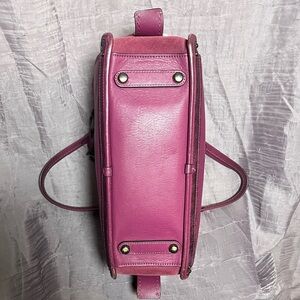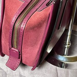 Coach Dreamer in beautiful mulberry with metallic accents. Leather bag with suede sides. Crossbody strap and hang tag missing. Wearing on the suede. See all pics, all callouts are pictured. Bid responsibly. Absolutely no cancellations or returns accepted. All sales final.