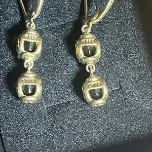 Peridot dangle drop earrings, featuring two green peridot gemstones. Peridot is the birthstone for August and is known for its vibrant olive green hue.