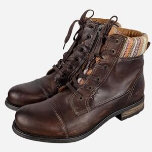 Taos Captain Boots Brown Full Grain Leather Casual Zip Lace Up Size US 9-9.5