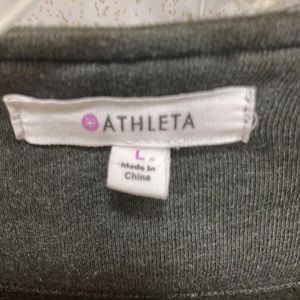 Indoor/outdoor zippered jacket by Athleta in Size Large. Olive green in color . Quilted front - zippered sleeves and side pocket . Great condition and weight