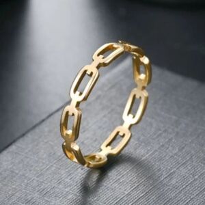 This elegant gold link ring adds a touch of sophistication to any outfit. Perfect for any occasion.