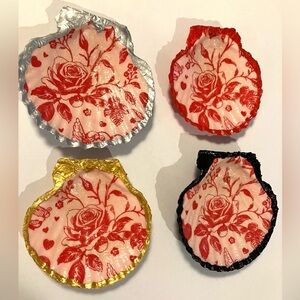 Handcrafted Shells Valentines Roses Decor or Ornament 4piece set Decoupage