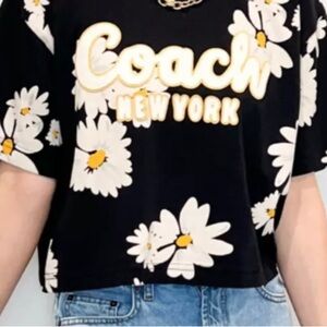 Coach floral cropped signature script T shirt , excellent condition , size small , Shirt is a loose style fit , floral pattern throughout with embroidered Coach New York at front , composition is organic cotton , composition label has been removed as it was on inner side of shirt and would rub, No damage . Comes from a non smoking home .