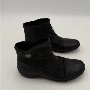 Clarks Black Ankle leather Boots women 8W Side Zipper casual office retro Y2K