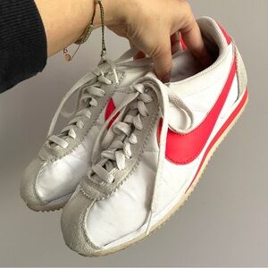 Nike Classic Cortez White / Red Nylon Sneakers - 8-8.5