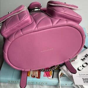 Coach Tabby Backpack with Pillow Quilting in Silver/Fuschia Nappa Leather NWT