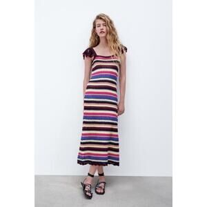Zara Long Multicolored Crochet Dress.