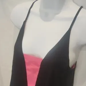 This chic two-layer camisole combines black and pink hues for a stylish look. Perfect for versatile wear.