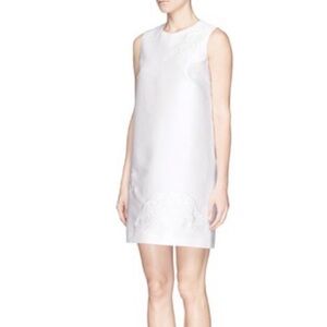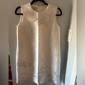 TIGER EMBROIDERY DUCHESS SATIN SHIFT DRESS WHITE