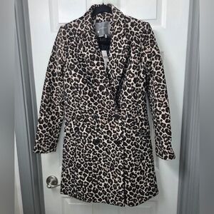 Anthropologie Leopard Print Contemporary Pea Coat Blazer Career Date Night 0 NWT
