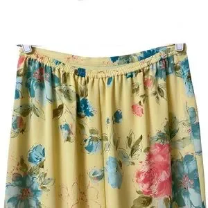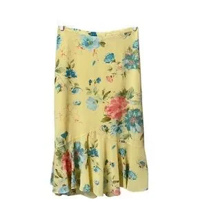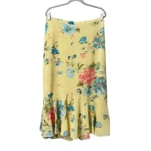Emma James yellow summer floral stretch waistband long flare hem skirt size 14
