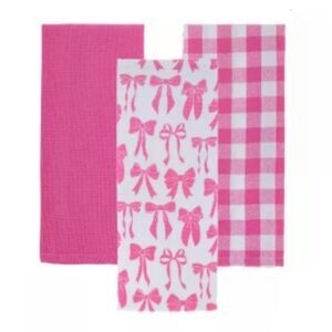 Adorable pink bow 3 piece dish towel set Perfect for adding a cute touch to your kitchen