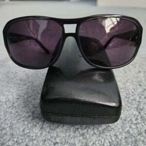 Elegant black aviator sunglasses with a chic design. This model is discontinued. Worn once, in like new condition. Includes protective black case.