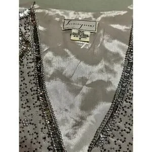 Vintage Spenser Jeremy silver silk vest with beading and embellishments! Very pretty with tie in the back. Size small.