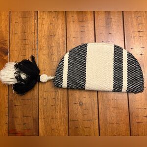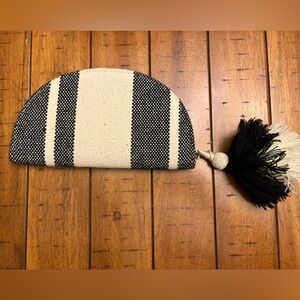 Chic clutch with bold stripes. Includes a stylish tassel accent.