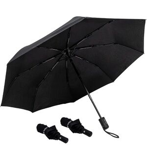 Sleek black compact umbrella. Perfect for travel and everyday use.