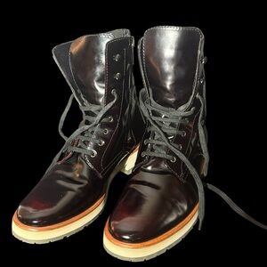 Aquatalia Oxblood Leather Lace Up Ankle Boots