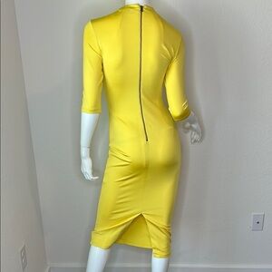 Alice + Olivia Yellow Ruched Bodycon Midi Dress