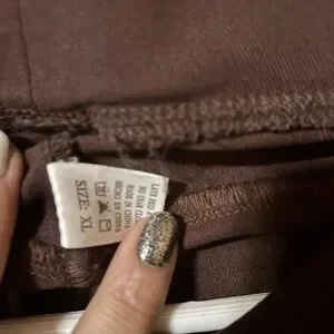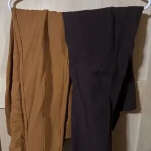 Stretchy and both very comfy. One is brown, the other is a camel colored. Both xl.