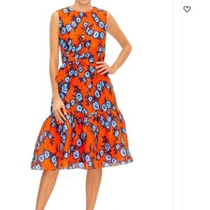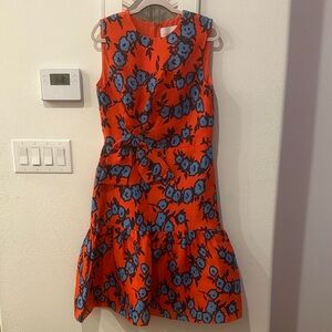 Vibrant orange/red sleeveless faux wrap with perfect bow. 100% silk outer layer and slip. Never worn.