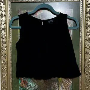 Nicole Miller Black Linen Blend Cropped Top XS Ruffled Hem