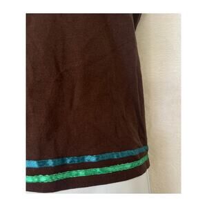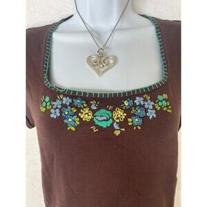 August Silk Brown Embroidered Short Sleeve Sweater Top Y2K sz XL Phoebe Buffay