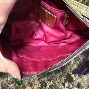 Coach Poppy Tartan Appliqué Groovy Shoulder Bag Brown Purple
