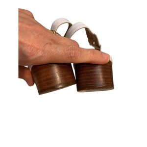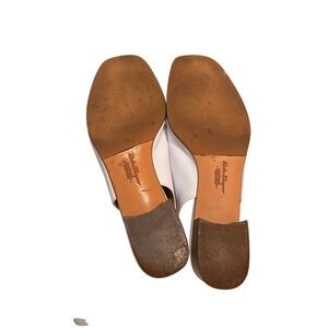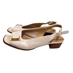 Salvatore Ferragamo White Leather Slingback Heels Gold Buckle Women's Size 9.5 B