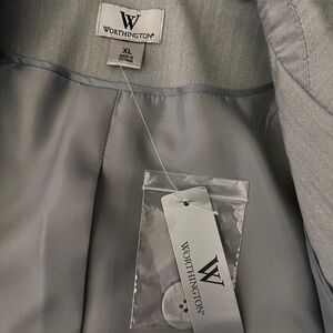 Stylish and versatile light gray jacket, perfect for any occasion. Made with a comfortable blend of polyester and spandex for a great fit.