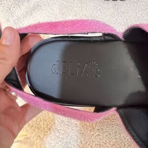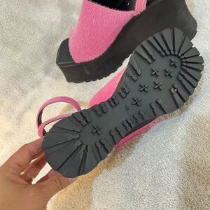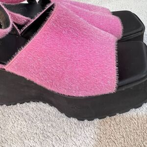 Delias Womens Pink Platform Wedge Sandals 11M Del21-155 Dolls Kill Fuzzy