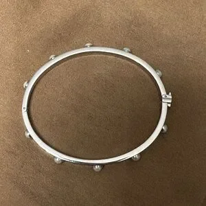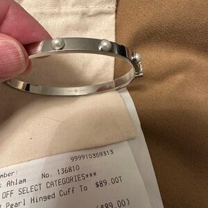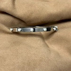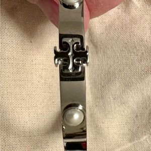 Tory Burch Silver Hinged Bangle Bracelet with Pearl Accents