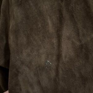 The Vince Brown Stretch Suede Split Hem Crop Pant in size Large is a chic and stylish addition to any woman's wardrobe. Made from luxurious leather with a suede finish, these pants feature a pull-on closure and a classic fit. The mid-rise waist and cropped length add a modern touch, while the stretch material ensures a comfortable and flattering fit. Perfect for any casual or dressy occasion, these pants are versatile and fashionable for the contemporary woman. *please note there are 2 small stains as shown in 4th and 5th photos I believe that you can get them out *