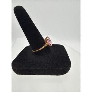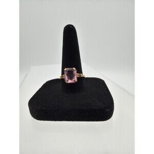 10K Yellow Gold Pink Gemstone Ring Size 7 Vintage Rectangular Stone