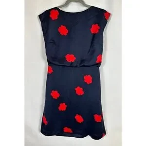 Banana Republic navy dress with red floral pattern. Drape back detailing with zipper back. Absolutely gorgeous- doesn’t fit me. The tiniest pilling/pulled thread as shown on the last photo. Size 2.
