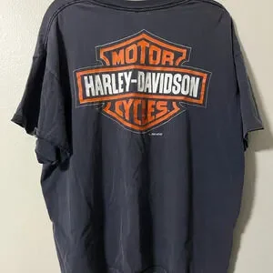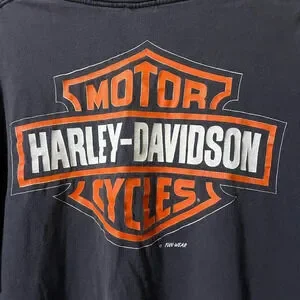 Single stitch Vintage Harley Davidson Motorcycle tee 1996 size XL biker grunge printed on both sides classic emblem on back small marks on the front graphic (see pictures) but overall excellent condition for being almost 30 years old.