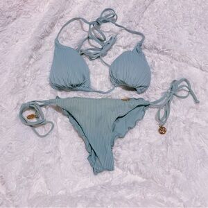 Luli Fama ORILLAS DEL MAR Triangle Bikini Top (M) & Side Tie Ruched Bottoms (S)