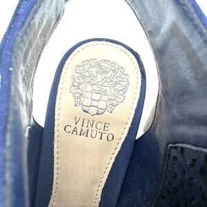 Vince Camuto Dastana Royal Blue Perforated Suede Leather Peep Toe Sandal Heels 7