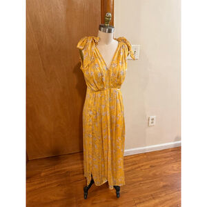Women's Sabina Musayev Yellow Floral Pleated Midi Dress S