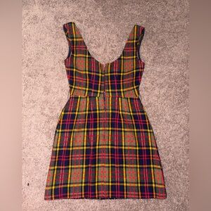 Vintage plaid mini dress from the 70s featuring a vibrant mix of colors. Fits as a women’s small to medium.
