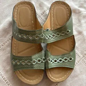 Sage Green Embroidered Comfort Slide Sandals - Size 39 (US 8-8.5)