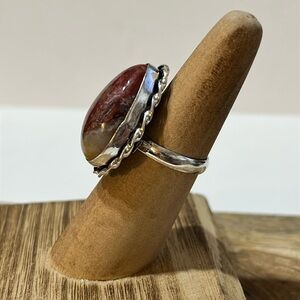 BRECCIATED JASPER GEMSTONE RING SIZE 6.25 STAMPED 925 SILVER PLATED