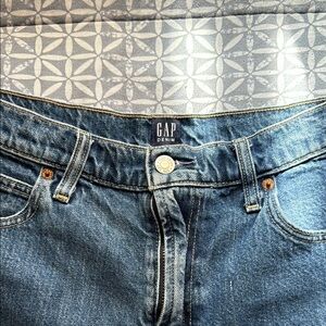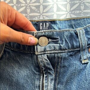 Denim blue classic wash size 27 with slightly distressed hem and in great condition. Length 14 in. 100 % cotton.