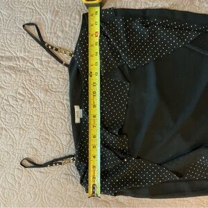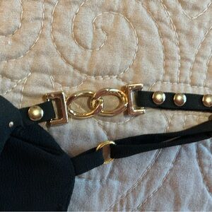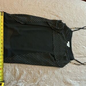 Preowned only worn a couple times. Beautiful gold hardware. This top is sheer. Please see pictures. There is a small mark or stain and this is visible in the pictures.