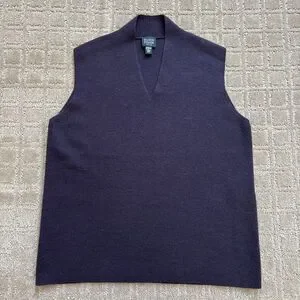 Eileen Fisher Wool Sweater Vest Women's MP Plum Purple V Neck Preppy Academia
