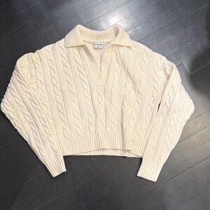Aritzia Sunday Best Cable Knit Cream Sweater. Wool Blend